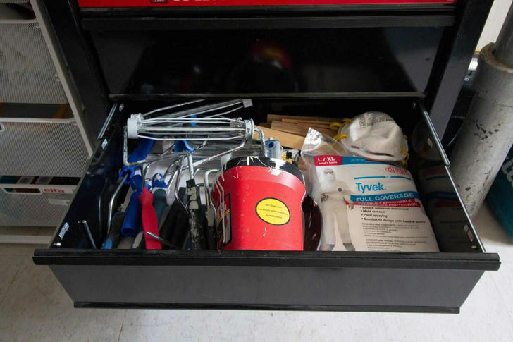 Painting supplies: Here, you’ll find paint rollers, stir sticks, and other painting gear.